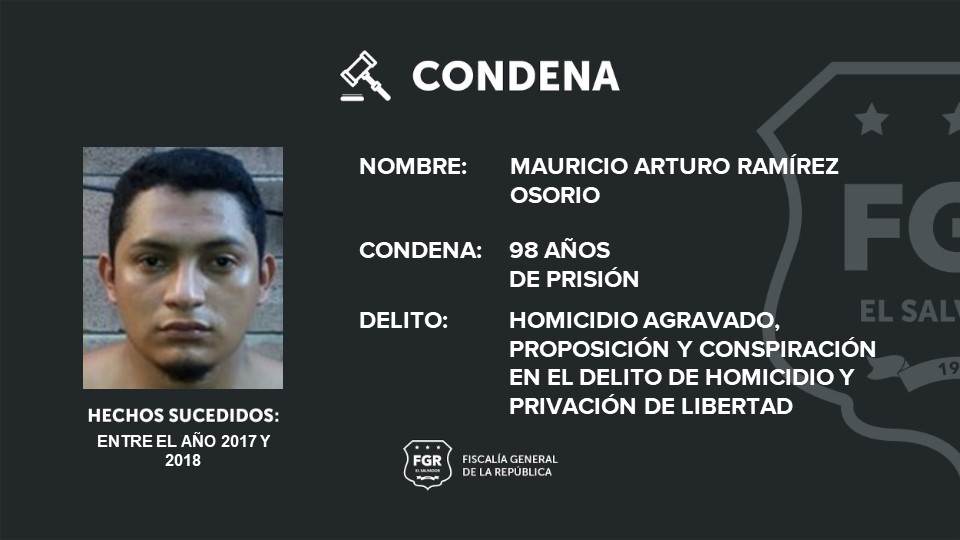 Víctor Manuel Menjívar González fue declarado responsable de tres homicidios agravados, secuestro, proposición y conspiración en delito de homicidio agravado, y se le impuso 129 años de cárcel.
