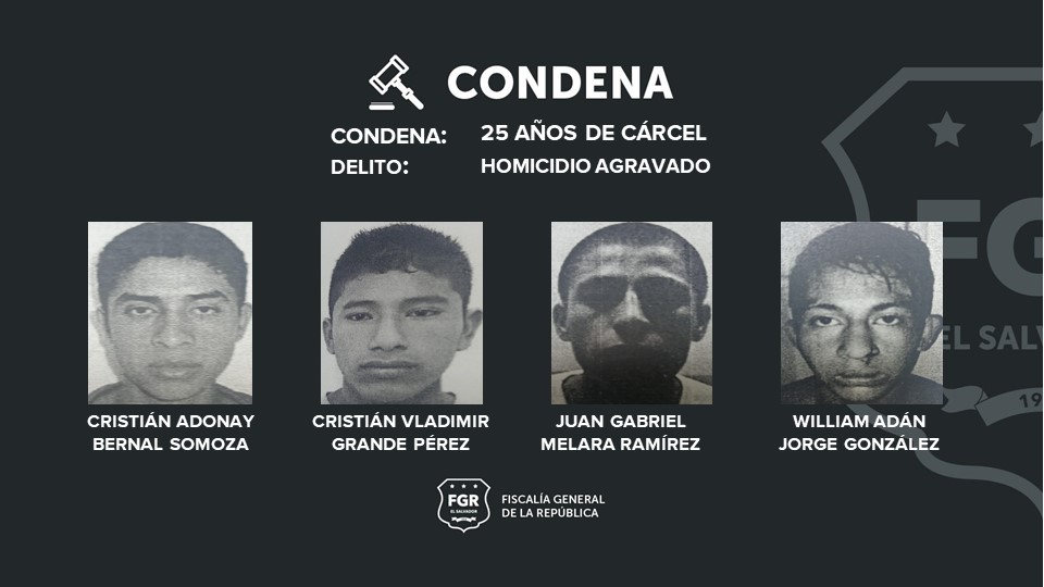 En el juicio, el Tribunal Segundo de Sentencia Santa Tecla validó la prueba pericial, documental y testimonial que presentó la Fiscalía para imponer la pena de 25 años a cada imputado por el delito de homicidio agravado.
