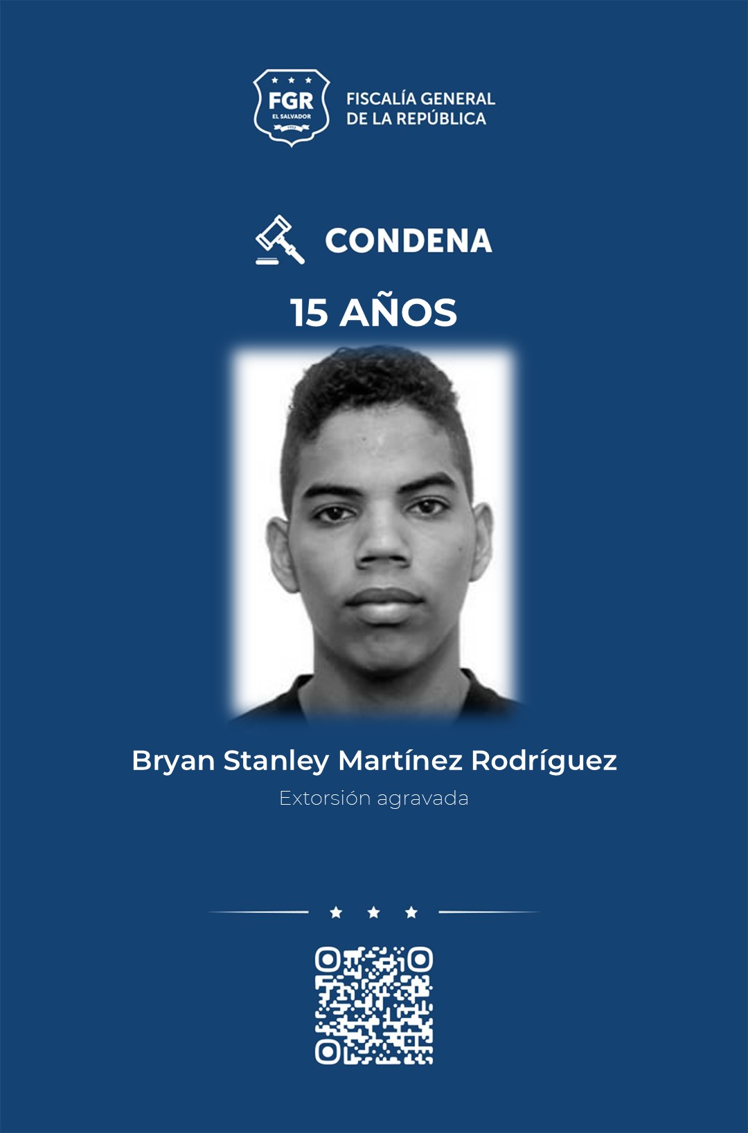 Apopa, San Salvador Oeste. Walter Emilio Rivas Valencia y Bryan Stanley Martínez Rodríguez fueron condenados a 15 años de cárcel por el delito de extorsión agravada en contra de un comerciante.