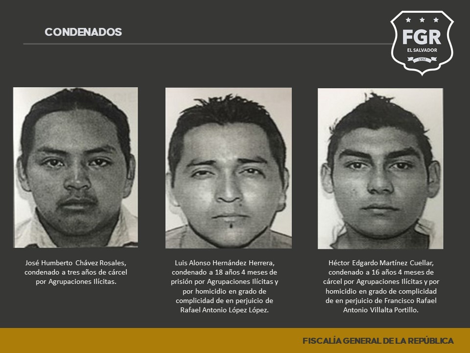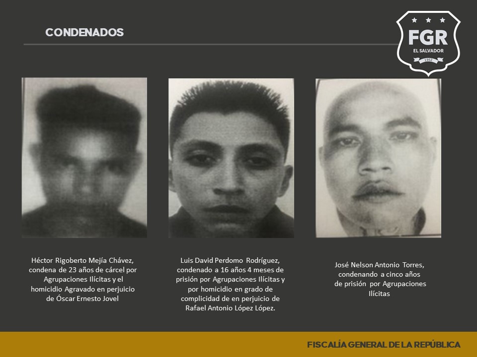 Todas las sentencias condenatorias fueron impuestas por el Juzgado Especializado de Sentencia “B” de San Salvador, con base a las pruebas de cargo presentadas por la Fiscalía General de la República.