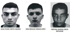 El Jefe de esta oficina Fiscal, Emilio Hidalgo, identifico a los imputados como: Cristian Javier Lemus Menjívar, alias “Oso”, de 23 años de edad, cuya función dentro de la pandilla es de Narcotraficante; Julio César Cortez Aquino, alias “Popeye”, de 24 años, e Iván Braulio García López, alias “Chilinco”, de 23 años, estos últimos con función de “Gatilleros”.