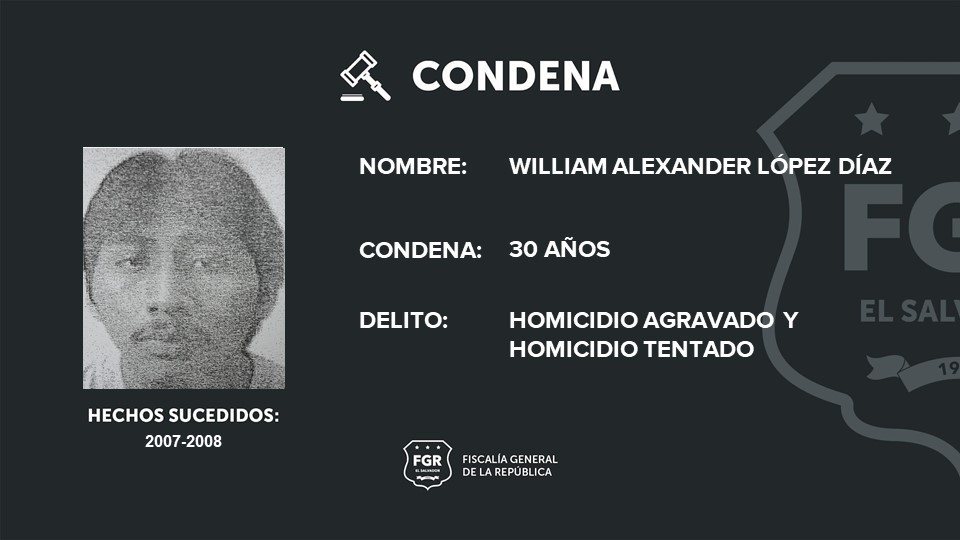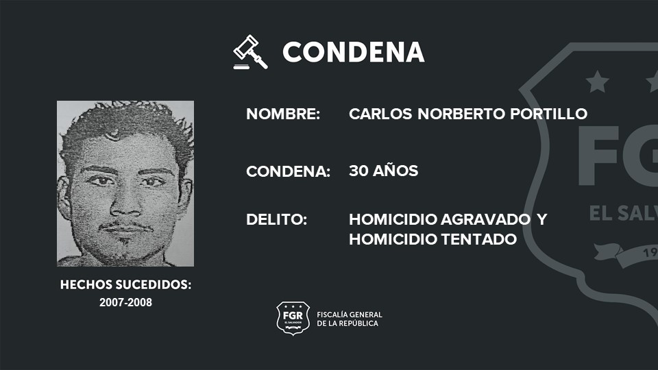 Asimismo, por un homicidio agravado, Carlos Norberto Portillo, alias calor, y William Alexander López Díaz fueron sentenciados a 30 años de prisión.