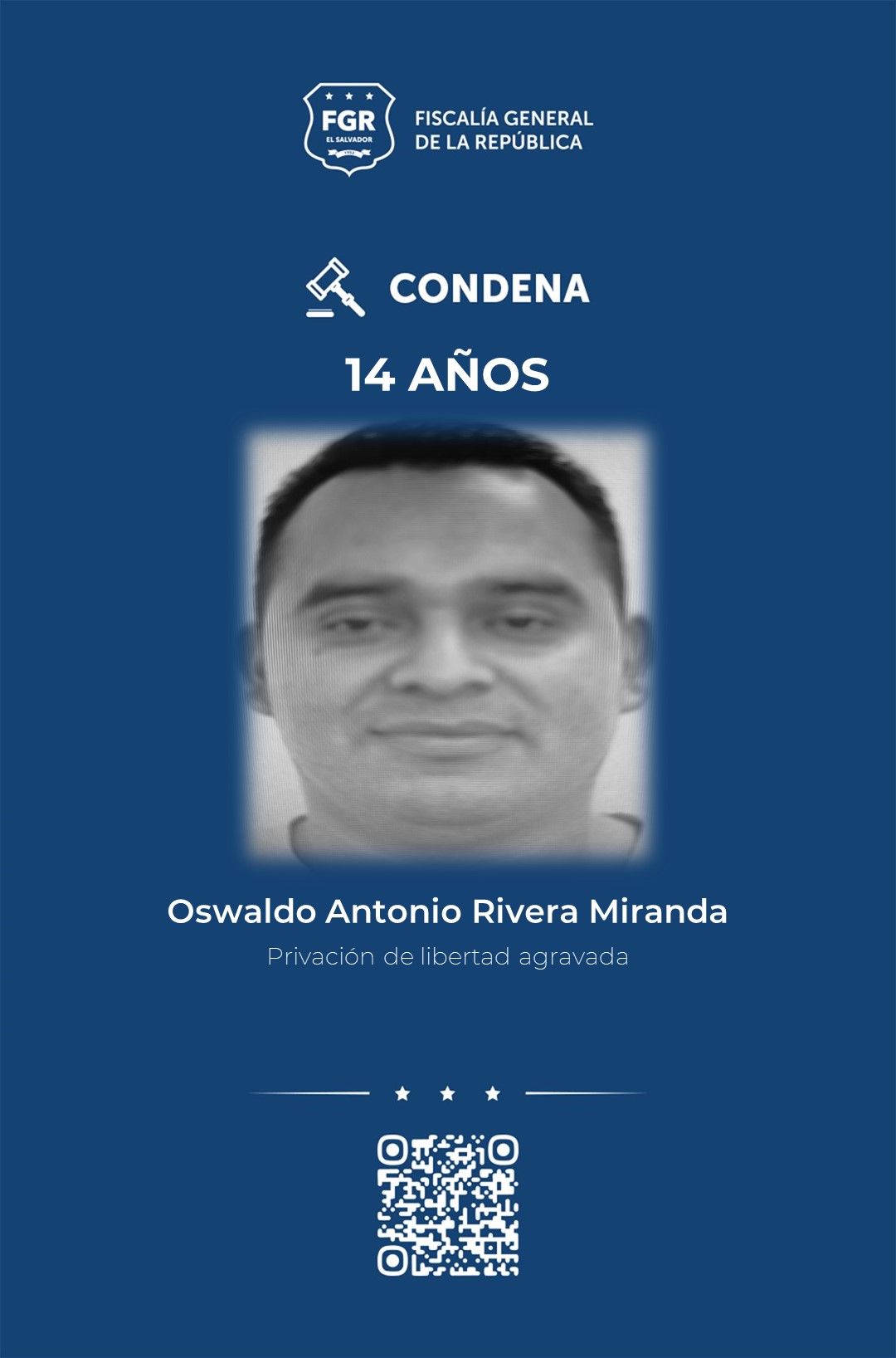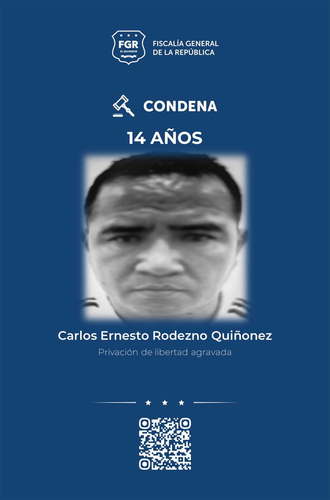 La condena de prisión fue impuesta en presencia de los imputados por el Tribunal Segundo de Sentencia de Santa Tecla, la cual fue gracias a la abundante prueba documental, pericial y testimonial que presentó la FGR en juicio.