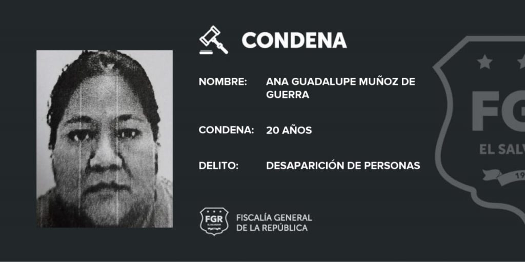 Los sujetos condenados han sido identificados como: Ana Guadalupe Múñoz de Guerra, Josué David Rivera Torres y Fernando Alirio Trujillo García.