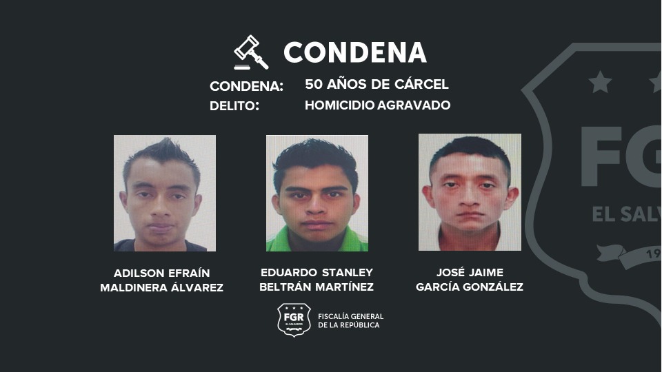 Además, José Jaime García González, Eduardo Stanley Beltrán Martínez y Adilson Efraín Maldinera Álvarez fueron condenados a 50 años de prisión, cada uno, por dos homicidios agravados.