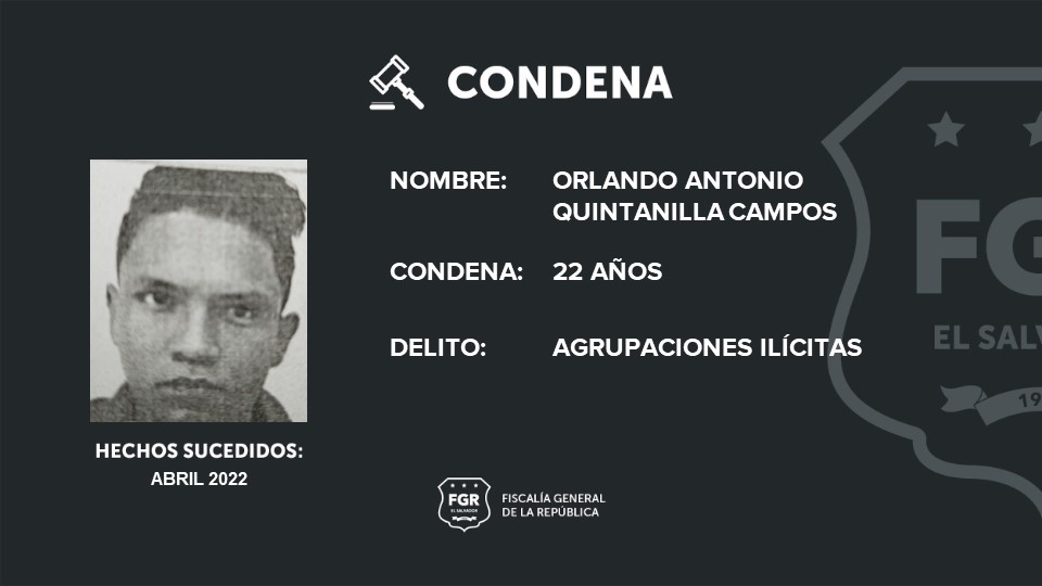 -22 años de prisión para Orlando Antonio Quintanilla Campos, colaborador de la Tribu Shadow Park Locos Sureños, Hengla Tian Wayni Sureños, cancha Génesis.