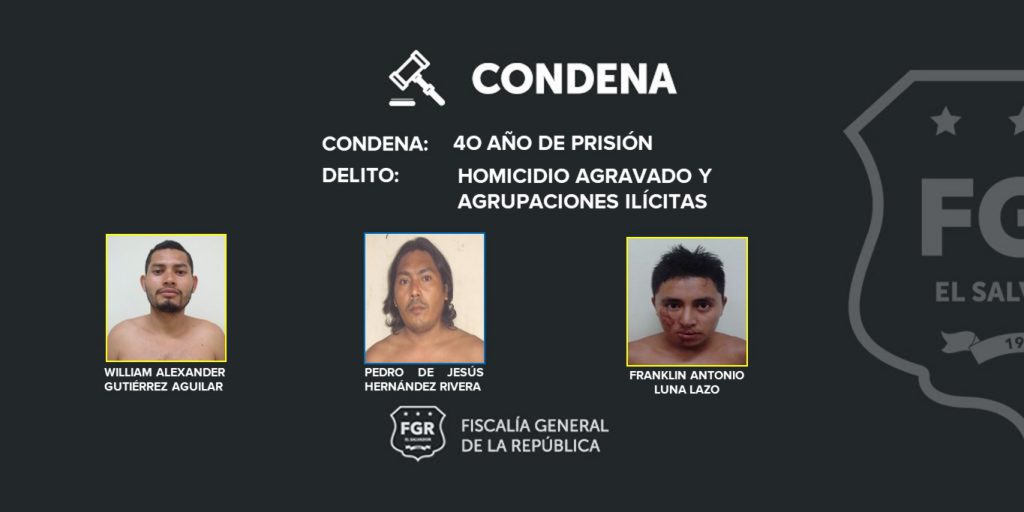 Mientras que Willian Alexander Gutiérrez Aguilar, Pedro de Jesús Hernández Rivera y Franklin Antonio Luna Lazo recibieron penas de cárcel de 40 años, cada uno.