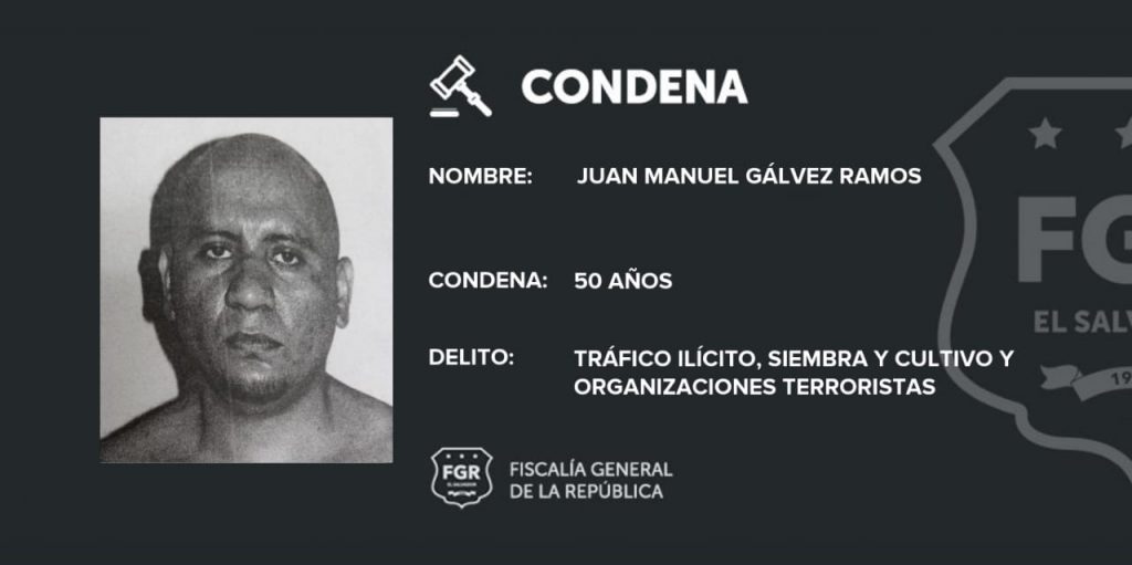 La pena más alta, 50 años de prisión, fue impuesta a Juan Manuel Gálvez y William Alexis Esperanza Ramírez; la condena se desglosa de la siguiente manera: 20 años de cárcel por el delito de Tráfico Ilícito de Drogas, 15 años por el delito de Siembra y Cultivo, y 15 más por Organizaciones Terroristas.