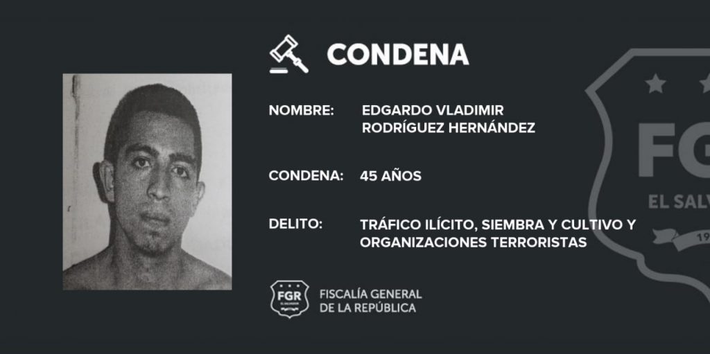 Mientras que Edgardo Bladimir Rodríguez Hernández fue sentenciado a 45 años de cárcel. 15 años por Tráfico Ilícito de Drogas, 15 por Siembra y Cultivo, y 15 más por Organizaciones Terroristas.