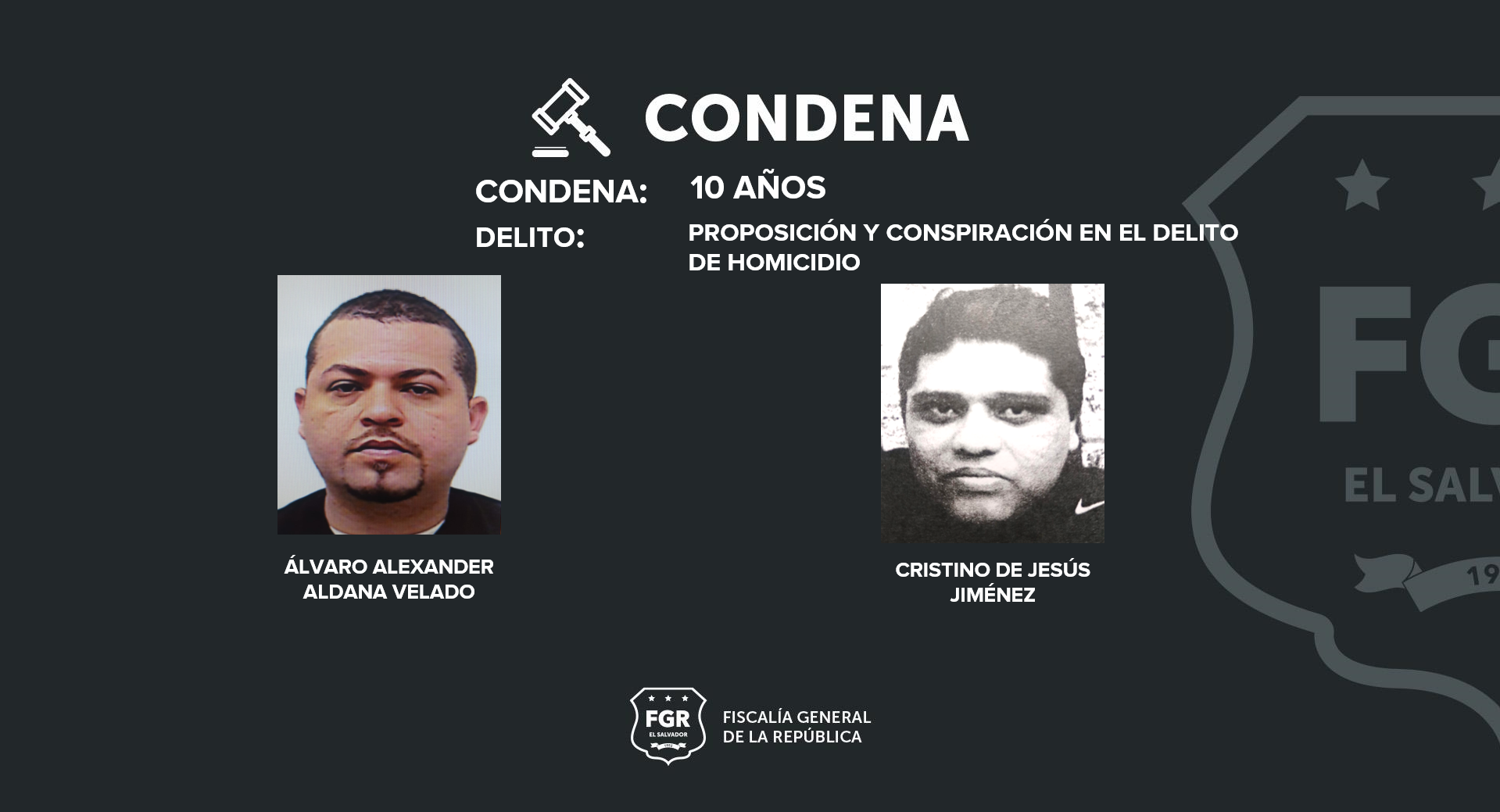 Cristino de Jesús Jiménez, ausente, y Álvaro Alexander Aldana Velado, reo presente, fueron condenados a 10 años de cárcel por haber planificado el crimen.