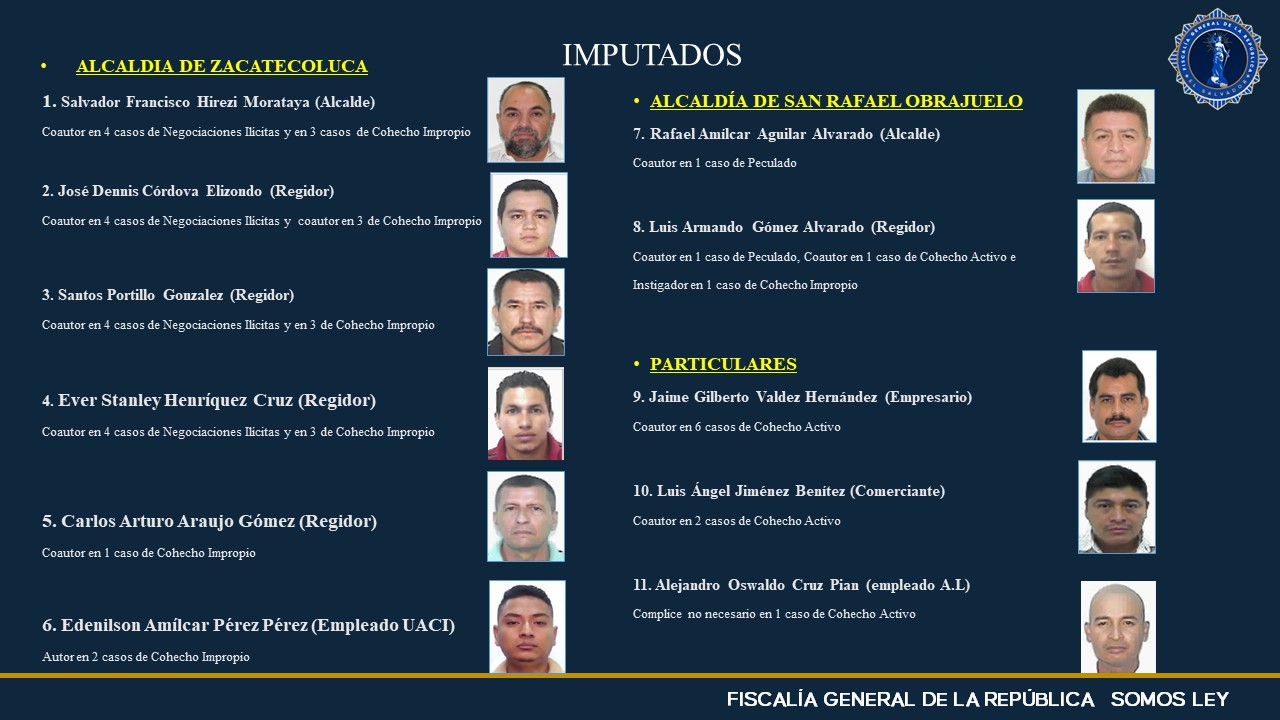 El Fiscal General de la República, FGR, dirigió una serie de allanamientos en esta madrugada para concretar 19 detenciones vinculadas a hechos de corrupción cometidos en las alcaldías de Zacatecoluca y San Rafael Obrajuelo.