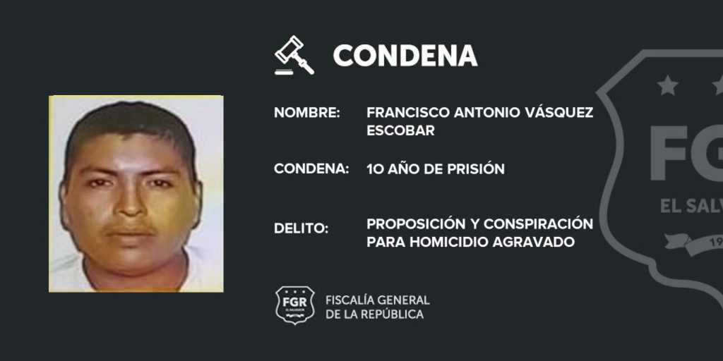 La Unión. En represalias por la captura de un miembro de la pandilla 18 sureños, Francisco Antonio Vásquez Escobar acordó y planeó, junto a otros pandilleros, el crimen de un agente de la Policía Nacional Civil (PNC). La confabulación se dio en el año 2015 en La Unión.