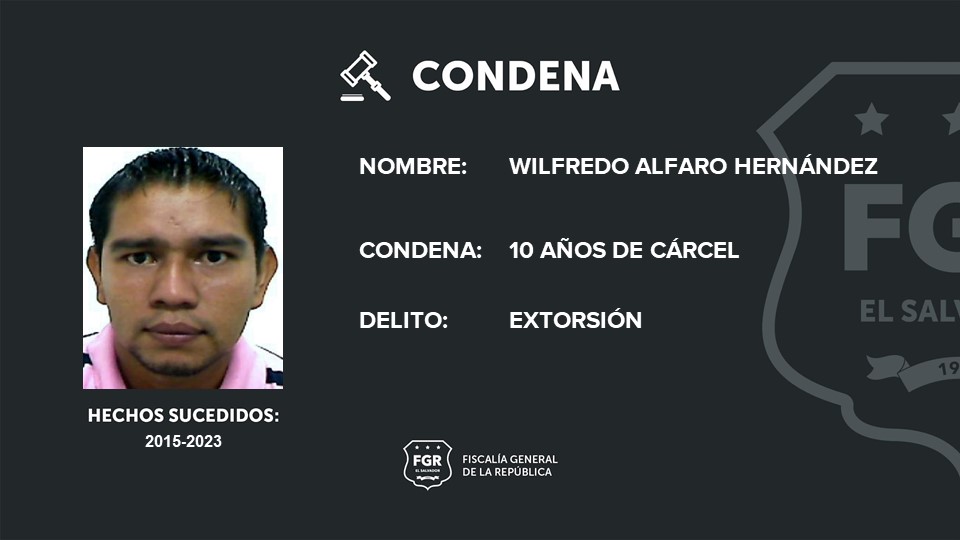 La condena fue impuesta por el Tribunal Segundo de Sentencia de Sonsonate, gracias a la abundante prueba, documental, pericial y testimonial que presentó la FGR en juicio, la cual fue clave para condenarlo por extorsión.