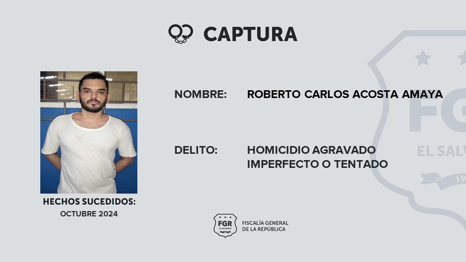 La Libertad Sur – Zaragoza. Roberto Carlos Acosta Amaya fue detenido por orden de la Fiscalía General de la República (FGR), acusado de intentar asesinar a una víctima en Tamanique, La Libertad Costa.