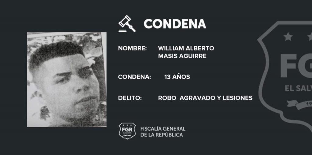Santa Ana. Sumando esfuerzos para que ningún pandillero quede impune por los ilícitos cometidos en contra de la población salvadoreña, la Fiscalía logró que se condenara a William Alberto Masis Aguirre y José Elías Mendoza Masis, a 13 años de prisión por robo y lesiones.