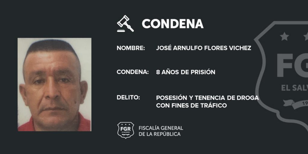 Usulután. La Unidad de Antinarcotráfico de la oficina de San Miguel logró una condena a 8 años de cárcel para José Arnulfo Flores Vichez, por tenencia de 18,597.19 gramos de marihuana, con un valor comercial de US$21,200.80.