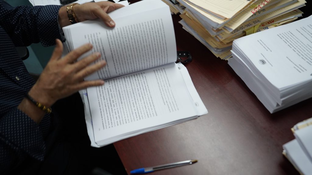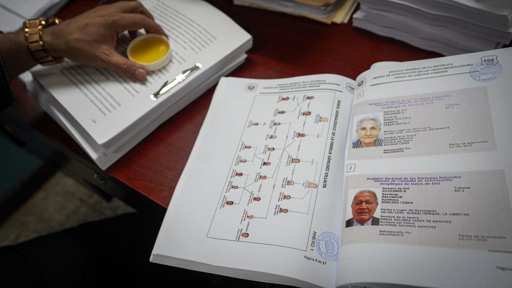 La diligencia fue presentada ante el Juzgado Segundo de Instrucción de San Salvador y uno de los fiscales de la Unidad de Investigaciones Especiales explicó que en el escrito se solicita que se admitan 900 elementos de prueba documental, 200 testigos y tres pericias financieras contables.