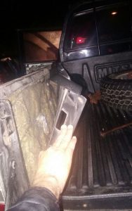 Uno de los automotores incautados es un pick up, color negro, año 2016, doble cabina, marca Mitsubishi, placas P-112817, era conducido por Alfonso Cartagena, y era acompañado por Reyes Meléndez.