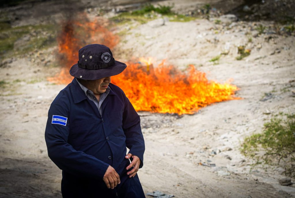 La quema realizada en Changallo, Ilopango, fue ejecutada en coordinación de la FGR, con la División Antinarcóticos y División Técnica Científica Forense de la PNC.