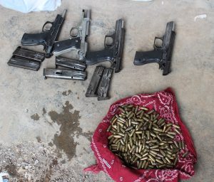 Una de las pistolas incautadas, calibre nueve milímetros, según los registros, estaba asignada a un agente de la PNC, destacado en el puesto policial de colonia La Cima, y tiene reporte de extravío desde el 18 de febrero de 2015.