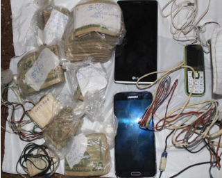 Además, se confiscaron 19,129.55 dólares, 287 cartuchos para las mismas armas, una granada mini D40 industrial, un radio satelital, 183 teléfonos celulares, 505 chips, una tablet, un cargador solar y 129 manuscritos (guilas).