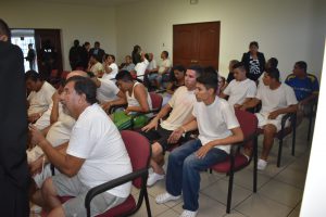 Fiscales especializados de la Unidad Antipandillas y del Grupo 300, junto a defensores, participaron hoy, en la audiencia instalada por el Tribunal Especializado de Instrucción «A» en San Salvador, a efecto de establecer el grado de participación que tuvieron en los nuevos hechos que se les atribuyen.
