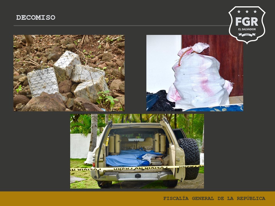 Mientras que, en la playa El Cuco, en el departamento de San Miguel, se realizó el hallazgo de 08 bultos que al ser revisados se contabilizaron 330 paquetes con droga positivo a cocaína, los cuales según información pretendían resguardarlos en un rancho privado, en donde al realizar el registro con prevención de allanamiento se encontraron vehículos de lujo, algunos con caletas (espacios ocultos) para ocultar droga.