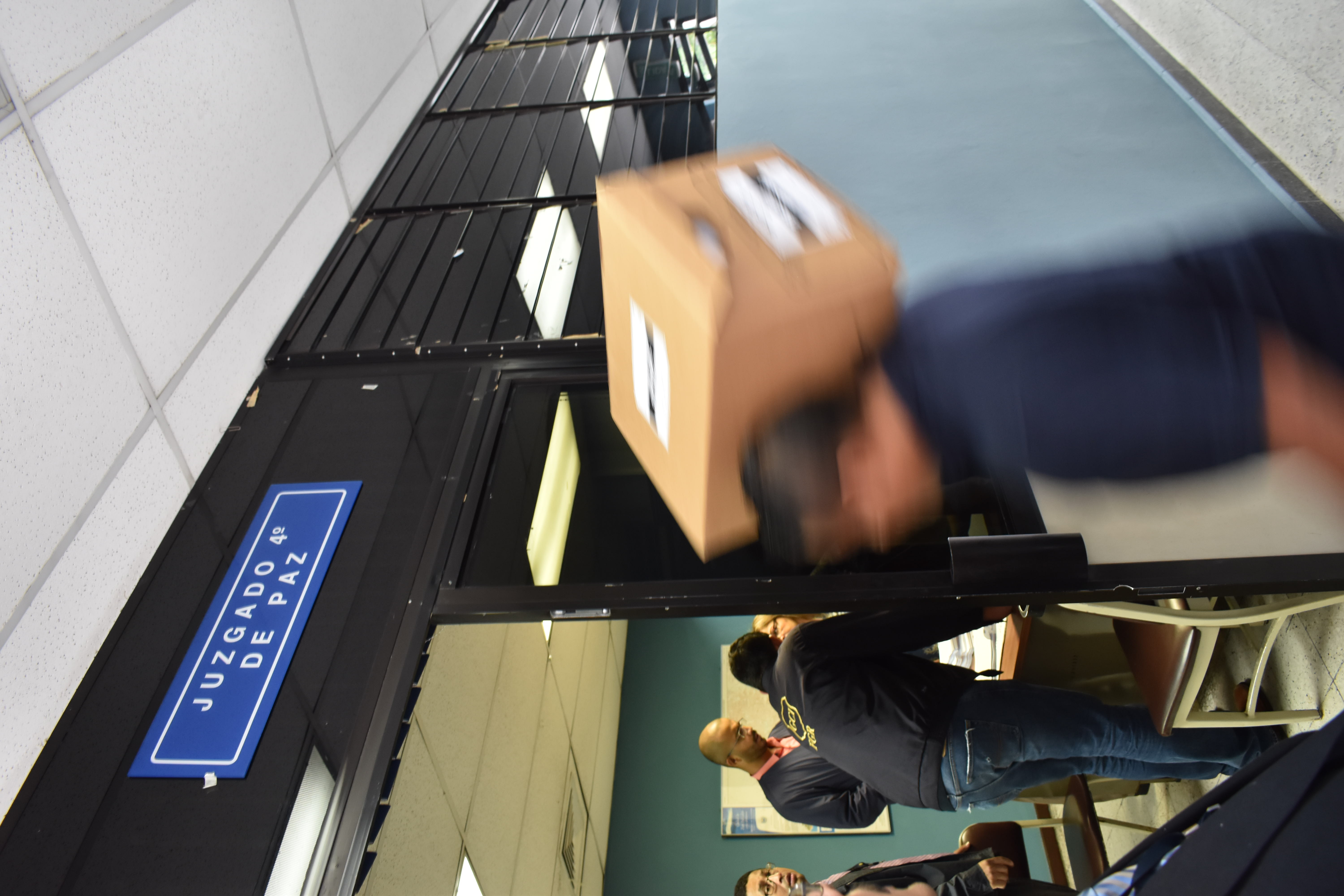 Fiscales de la Unidad Especializada Contra el Lavado de Dinero y de Activos, llegaron este jueves hasta el Juzgado Cuarto de Paz en San Salvador, para presentar el requerimiento con sólidos elementos iniciales de investigación, los cuales fueron distribuidos en por lo menos 22 cajas.