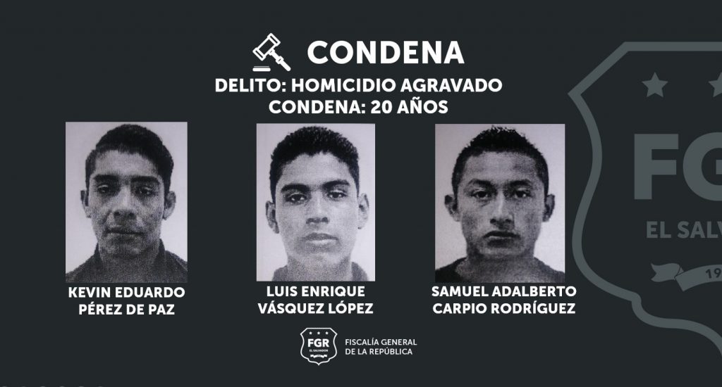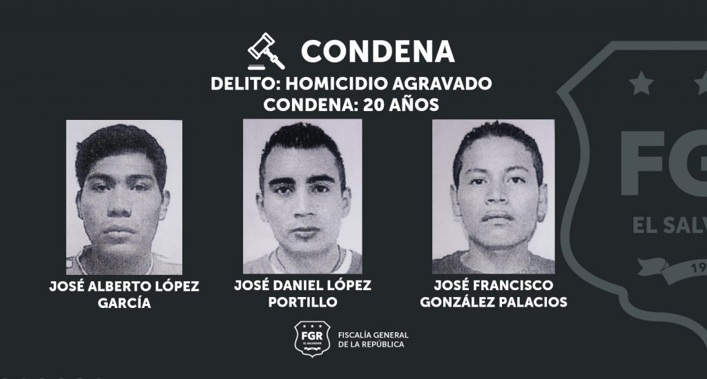 Cojutepeque, Cuscatlán. Seis miembros de pandilla fueron condenados a 20 años de cárcel por el delito de Homicidio Agravado, gracias a las contundentes pruebas presentadas por los fiscales del caso. Según las investigaciones de la Fiscalía, los imputados asesinaron a la víctima, un agricultor y ganadero de la zona, porque sospechaban que brindaba información a las autoridades sobre las actividades delictivas de los pandilleros.