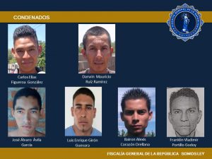 Los imputados responden a los nombres de: Carlos Elías Figueroa González, Luis Enrique Girón Guevara, Franklin Vladimir Portillo Godoy, José Álvaro Ávila García, Darwin Mauricio Ruíz Ramírez y Bairon Alexis Corazón Orellana, todos miembros de la MS.
