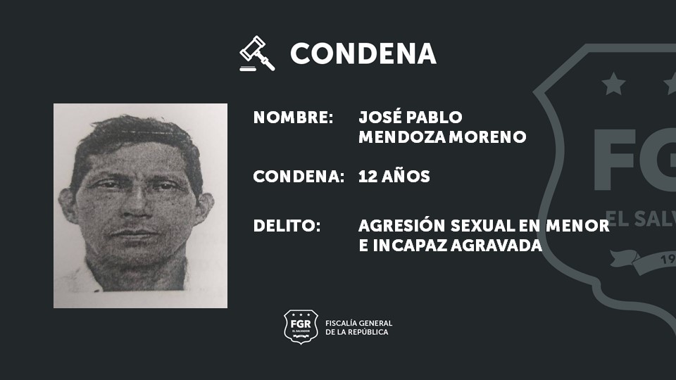 Sonsonate. Las irrefutables pruebas presentadas por la Fiscalía ante el respectivo tribunal permitieron que se imponga una condena de 12 años de prisión a José Pablo Mendoza Moreno, quien en el año 2021 agredió sexualmente a una niña de 4 años.
