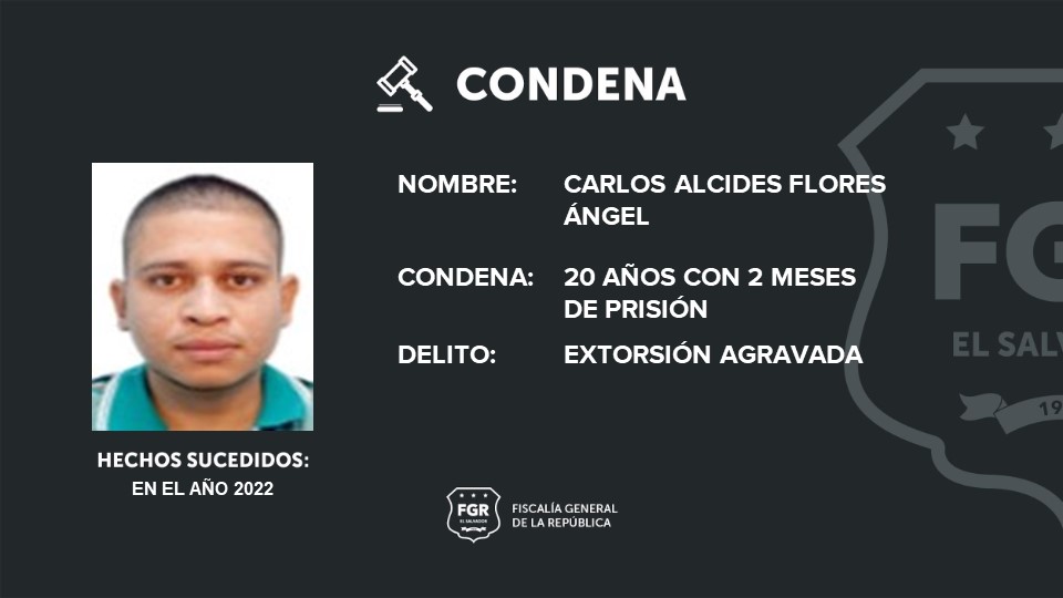 Cojutepeque, Cuscatlán Sur. Con diferentes pruebas periciales, documentales y testimoniales, la Fiscalía General de la República demostró que los miembros de la MS-13, Joel Benjamín López Ángel y Carlos Alcides Flores Ángel son responsables de haber exigido dinero de forma personal con amenazas de muerte a una víctima.