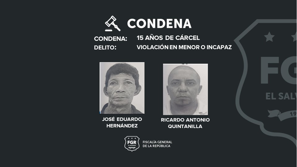 José Eduardo Hernández y Ricardo Antonio Quintanilla Parada fueron declarados culpables de violación en menor o incapaz, y Ana Marisol Méndez Ramírez, por el delito de comisión por omisión en el delito de violación en menor o incapaz.