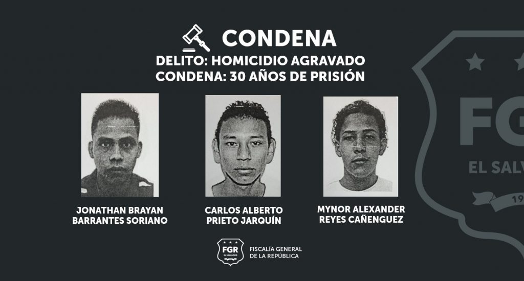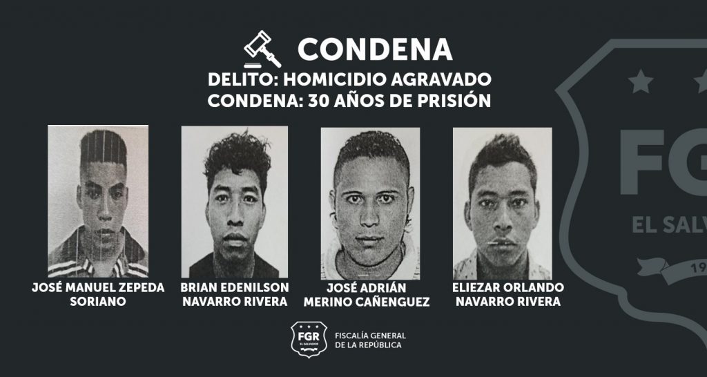 El Tribunal Segundo de Sentencia de Zacatecoluca validó toda la investigación realizada por los fiscales del caso, quienes lograron demostrar que cada uno de los imputados se encontraba en el lugar y fecha del crimen, por lo que decidió imponer la pena de 30 años de cárcel, que es la pena máxima establecida para esta tipificación delictiva.