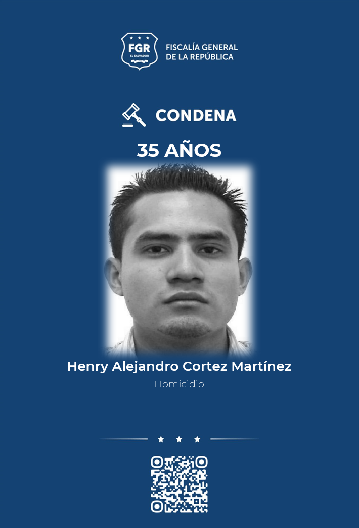 Soyapango, San Salvador Este. Henry Alejandro Cortez Martínez fue condenado a 35 años de prisión por el delito de homicidio, gracias a la prueba presentada por los fiscales.