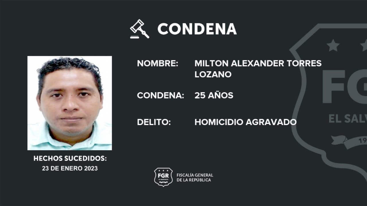 La Libertad Sur-Zaragoza. Una condena de 25 años de prisión fue impuesta a Milton Alexander Torres Lozano por haber asesinado a una persona el 23 de enero 2023, en el cantón El Tigre, sector del Majahual, La Libertad Costa.