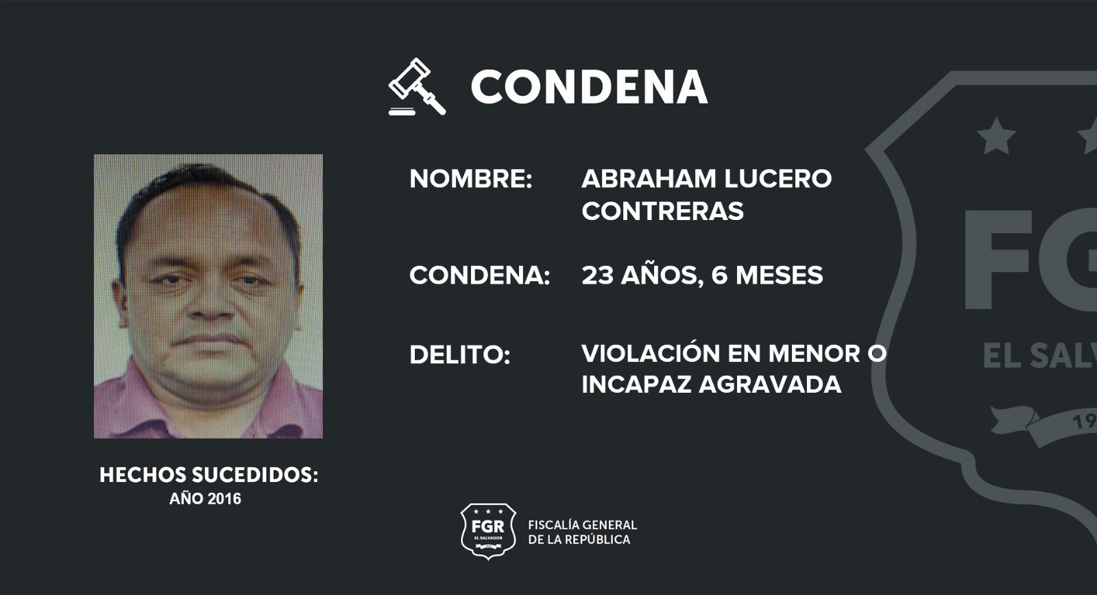 Mejicanos, San Salvador. Abraham Lucero Contreras fue sentenciado a 23 años y 6 meses de prisión por el delito de violación en menor o incapaz, modalidad agravada, gracias a la sólida investigación realizada por las fiscales.