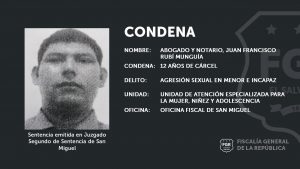 San Miguel. La Fiscalía Adjunta responsable de los Derechos de la Niñez, Adolescencia y la Mujer y otros grupos vulnerables, informa que un Abogado y Notario fue condenado a 12 años de prisión por el delito de Agresión Sexual en Menor e Incapaz en perjuicio de una víctima de 14 años.