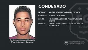 La Fiscalía, a través de la Unidad Especializada Antipandillas y Delitos de Homicidio, dio a conocer que el Tribunal Segundo de Sentencia de Santa Ana, desarrolló la vista pública en contra de Walter Alberto Durán Estrada, integrante de la “Mara Salvatrucha”, a quien se les atribuye los delitos de Homicidio Agravado en perjuicio del agente Mario Ernesto Centeno Díaz y Agrupaciones Ilícitas.