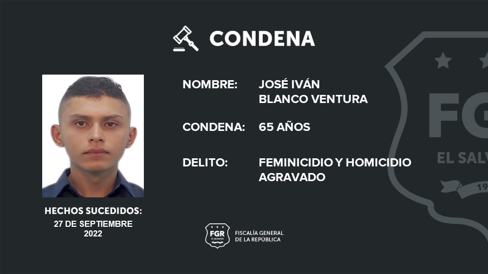 San Miguel. La Fiscalía General de la República (FGR) logró que José Iván Blanco Ventura fuera sentenciado a 65 años de prisión; los primeros 35 años de cárcel son por el delito de feminicidio y 30 años por homicidio agravado. Los crímenes se cometieron en San Miguel.