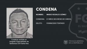 Santa Ana. Mario Orlando Rosales Gómez, fue sentenciado a 17 años con seis meses de prisión, por intentar quitarle la vida a una mujer, aseguró la fiscal del caso de la Unidad de Atención Especializada para la Mujer, Niñez y Adolescencia.