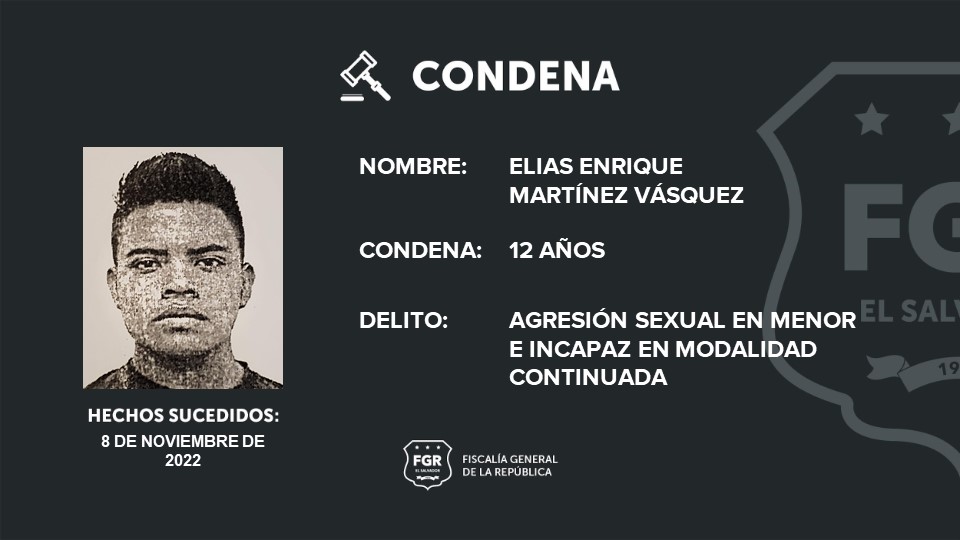 Santa Tecla, La Libertad. Una condena de 12 años de prisión logró la Fiscalía para Elías Enrique Martínez Vásquez, quien en juicio fue declarado culpable de haber agredido sexualmente a un menor de edad, en La Libertad.