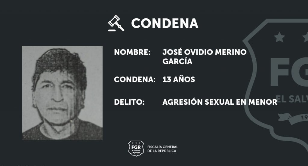 San Vicente. Gracias a las pruebas presentadas por las fiscales, se logró condenar a José Ovidio Merino García a 13 años de prisión por los delitos de Agresión Sexual en menor y Exhibiciones Obscenas en perjuicio de una víctima de seis años de edad.