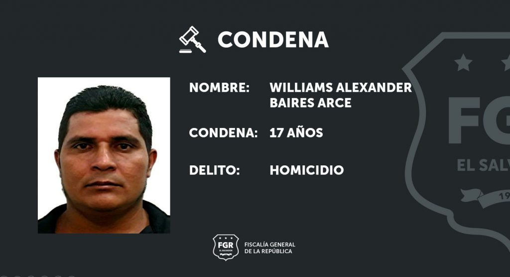San Vicente. Williams Alexander Baires Arce fue condenado a 17 años de prisión por los delitos de homicidio simple y lesiones en perjuicio de dos víctimas.