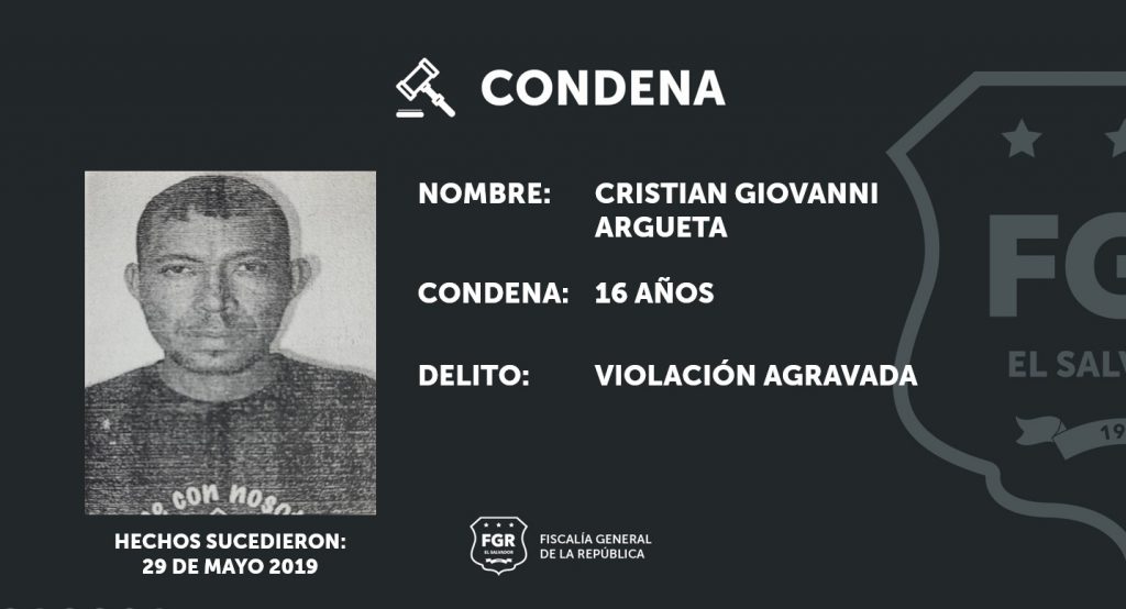 San Vicente. Cristian Giovanni Argueta fue encontrado culpable y sentenciado a 16 años en prisión por el delito de violación agravada, gracias a las robustas pruebas presentadas por las fiscales.
