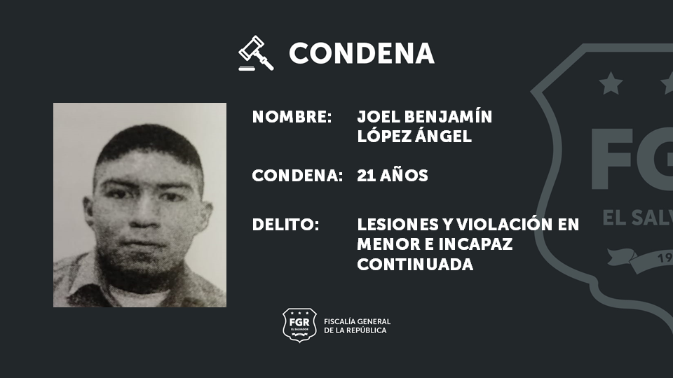 Cabañas. La Fiscalía General de la República logró que Joel Benjamín López Ángel fuera sentenciado a 21 años de prisión por los delitos de lesiones y violación en menor e incapaz continuada en perjuicio de una niña.