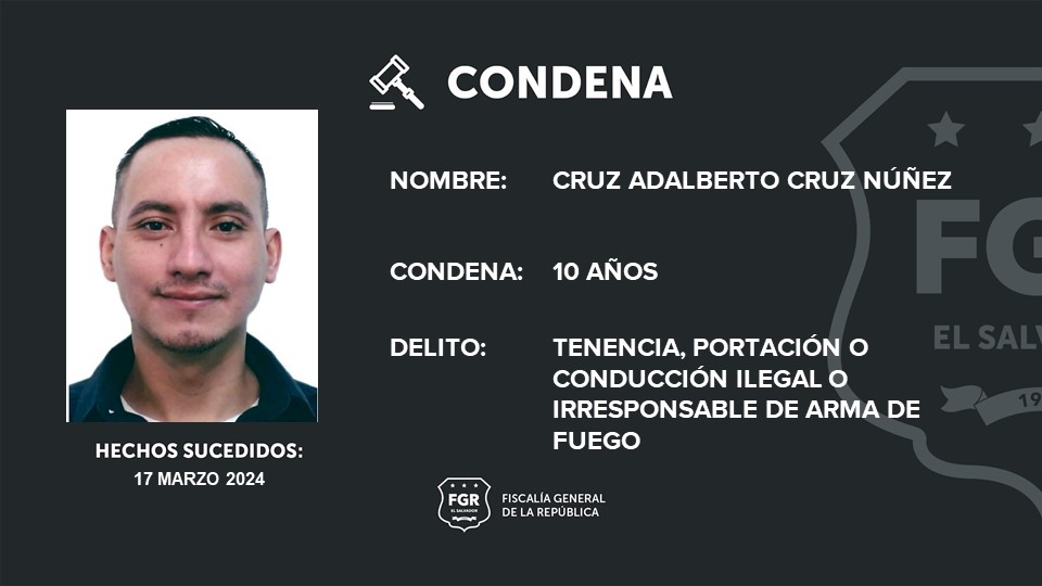 Gracias a las abundantes pruebas que la FGR presentó ante el Tribunal de Sentencia de Chalatenango, logró establecer la participación del imputado y lo condenó en presencia por el delito de tenencia, portación o conducción ilegal o irresponsable de arma de fuego.