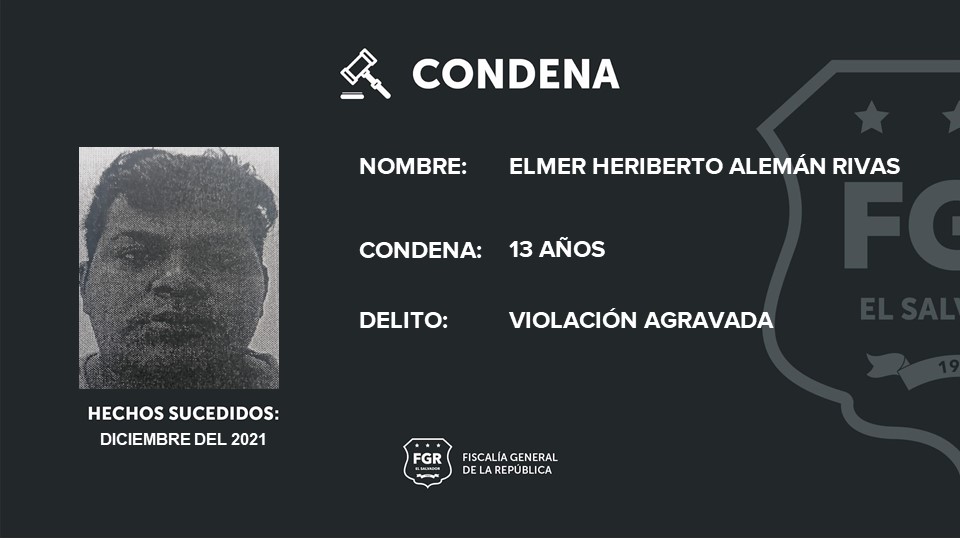 Por esos hechos, la FGR logró que el Tribunal Segundo de Sentencia de Santa Tecla lo condenara a prisión por el delito de violación agravada, valorando las pruebas documental, pericial y testimonial.