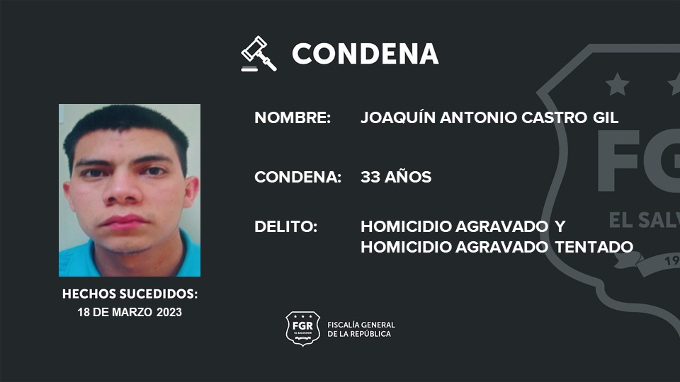 Chalatenango. A 33 años de prisión fue condenado Joaquín Antonio Castro Gil por asesinar a una concejal de la Alcaldía de Citalá Chalatenango e intentar matar a otra víctima. El crimen se cometió en el cantón Lagunetas, Chalatenango Norte.