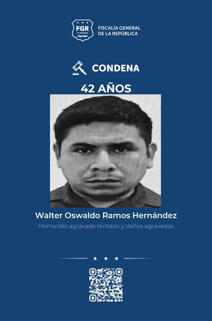 Santa Tecla, La Libertad Sur. La Fiscalía General de la República (FGR) logró hacer justicia para tres policías y Walter Oswaldo Ramos Hernández fue condenado a 42 años de prisión por haber intentado asesinarles con arma de fuego, el 20 de noviembre 2017 en la jurisdicción de Talnique, La Libertad Oeste.